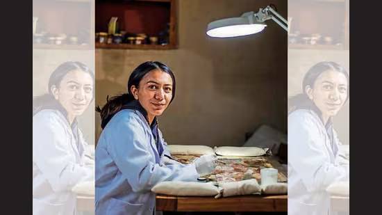 Inside a 200-year-old building in Leh, at the region’s first art conservation lab, Noor Jahan, 33, gently scrapes oil and soot off a decades-old thangka painting, using a long cotton bud. The work comes from Keylong village, 350 km away in Himachal Pradesh. And under the bright, white light of her studio and her careful cleaning, vivid reds and yellows of Buddhist deities slowly emerge.