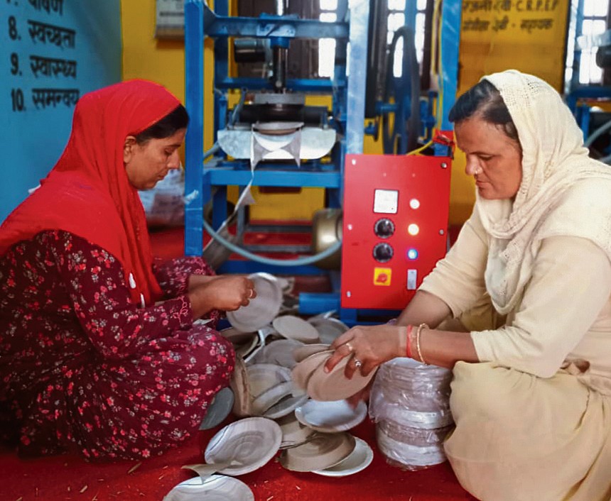 Raj Bala Verma and Kavita of Gagsina village are members of Jeevansathi Mahila Gram Sangathan. They set up two disposables-making machines with the investment of Rs 2.08 lakh, and in the last 15 to 20 days they earned a profit of Rs 15,000. “My life has changed after becoming a member of this group. I had no work experience and lacked confidence, but now I can very easily work,” said Verma, who has three children.
